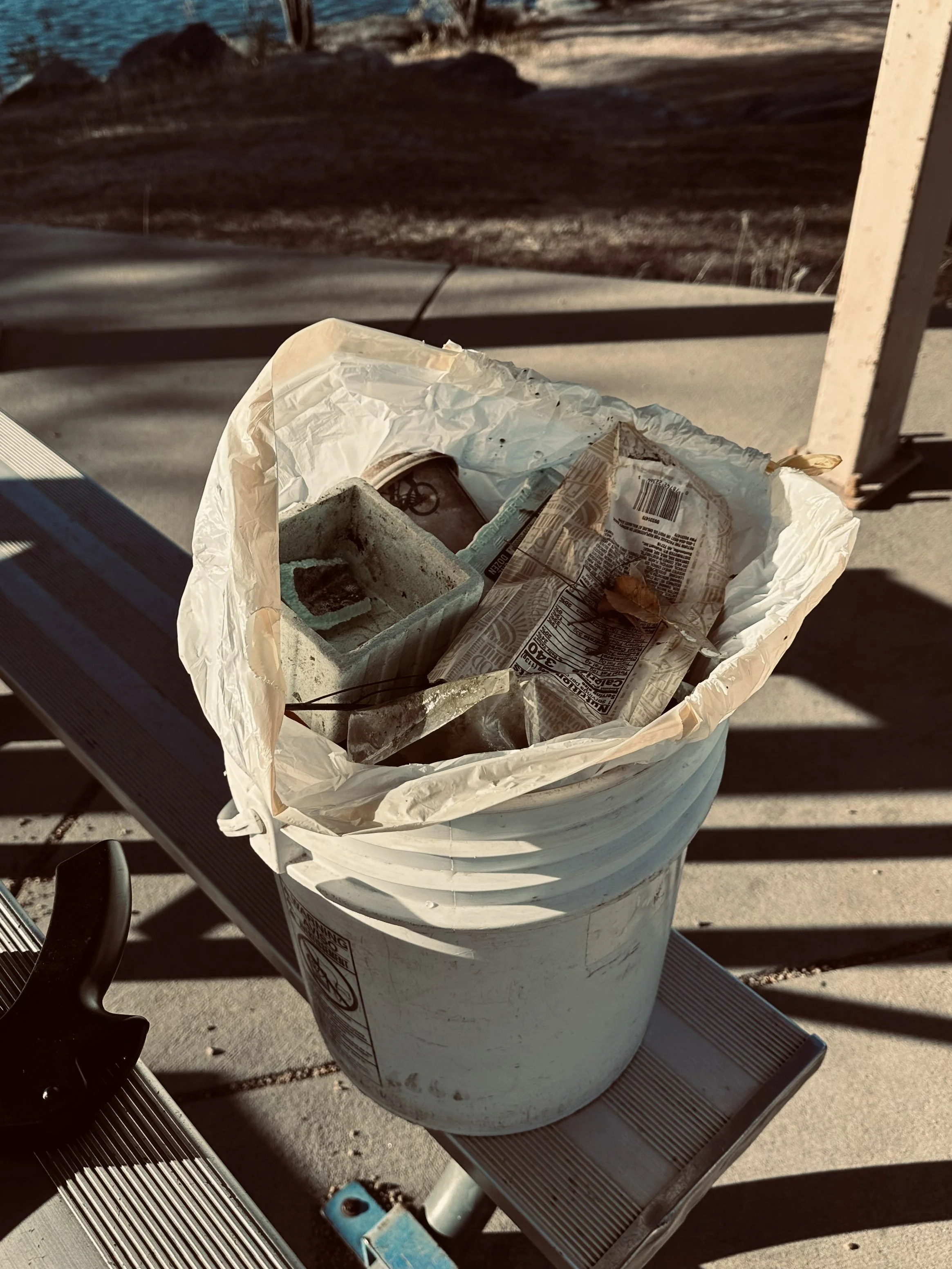 Having been given additional tools from the City of Englewood, I didn’t need to make any major upgrades to the setup. In fact, I was able to scrap a trunk divider from a local alleyway and clean it up. Now, with the additional grabbers, gloves, boots, buckets, strainers, garbage bags, etc. I’ve been able to fully load up the back of my SUV to be a mobile cleanup operation. On any given day, I’ve got what I need to help clean up a local park, and enough supplies to make up a team of 4 for future projects. Today was also the most waste collected to date at 20 Gallons of waste. And that’s excluding the bike tire, innertube, or the heavy duty elastic band that was pulled out of the adjacent Oxbow lake.